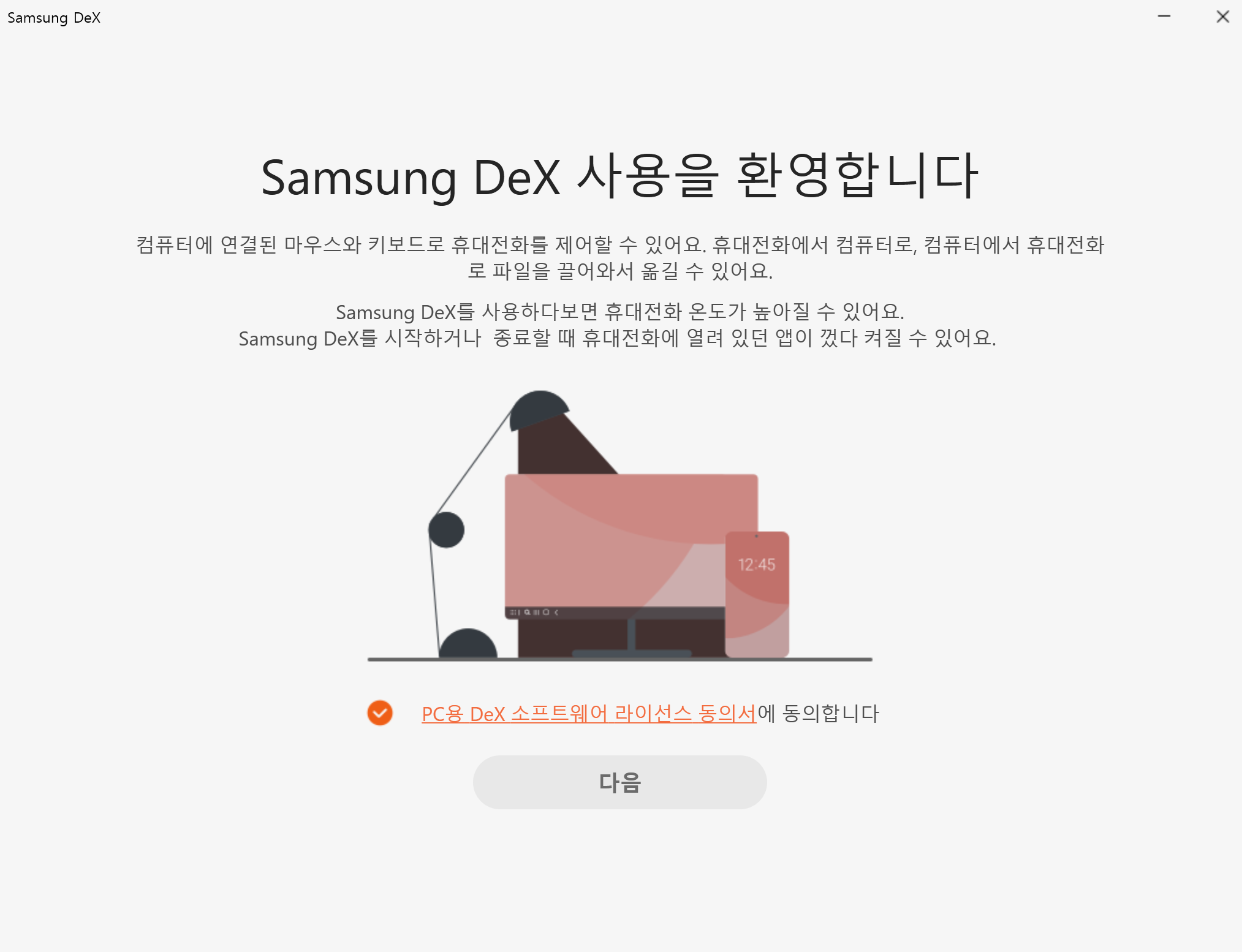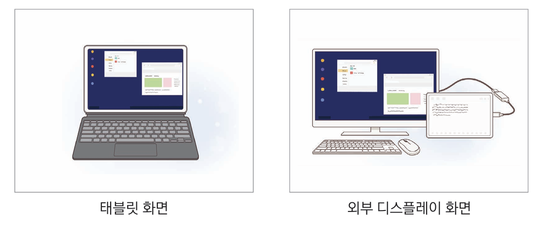 이 모드를 통해 모바일 기기를 모니터, 키보드, 마우스와 연결하여 PC처럼 활용할 수 있습니다.