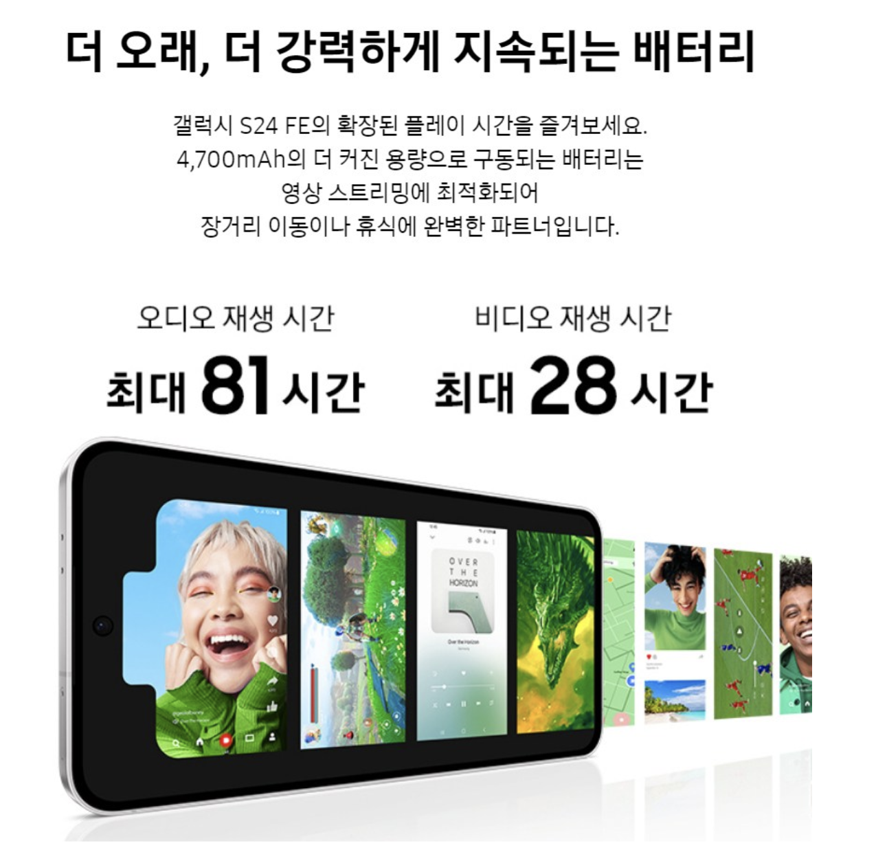 4,700mAh 대용량 배터리로 하루 종일 사용해도 충분한 성능을 보여줍니다. 25W 유선 충전과 무선 충전 기능을 지원해 편리함도 더했습니다.