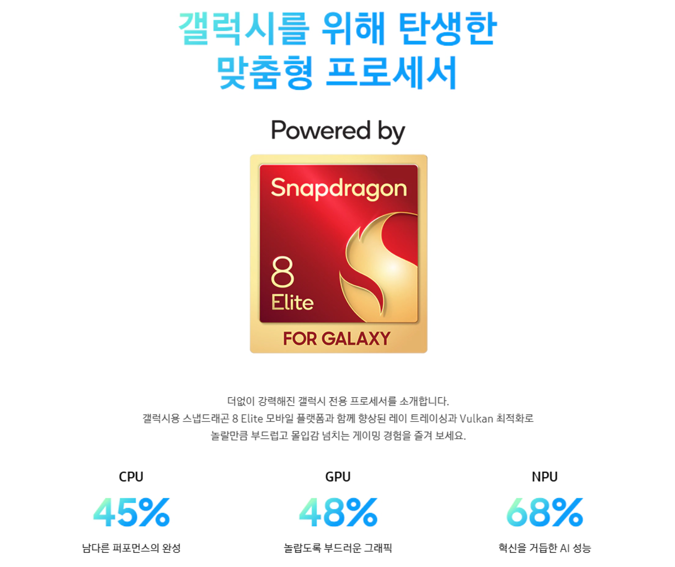 프로세서 | 퀄컴 스냅드래곤 8 Elite for Galaxy |